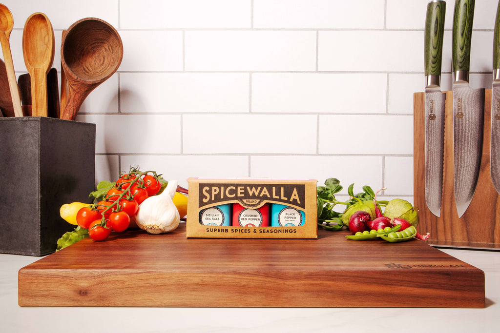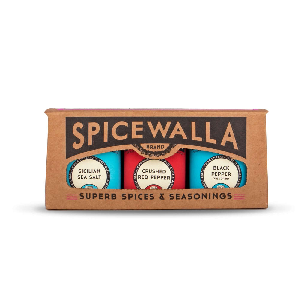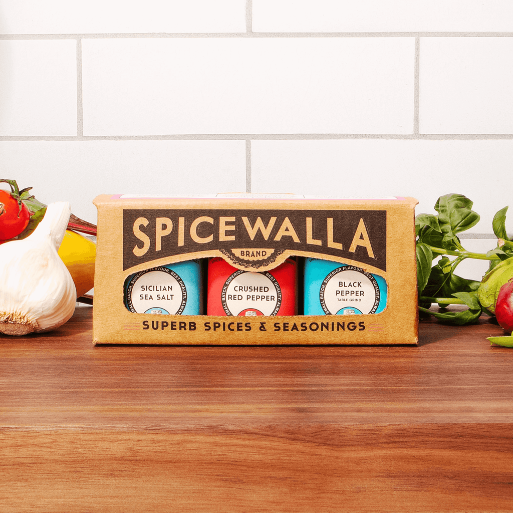 The Spicewalla Kitchen Essentials 3-Pack brings together three foundational ingredients every cook reaches for daily. Featuring Sicilian sea salt, crushed red pepper flakes, and table grind black pepper, this trio delivers the core flavors that build great dishes from the ground up.