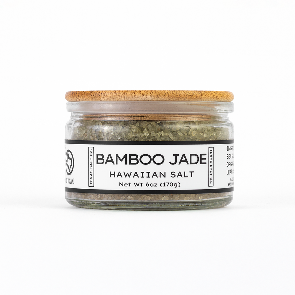 Texas Salt Co. Bamboo Jade Hawaiian Salt blends premium Hawaiian sea salt with organic bamboo leaf extract to create a striking green finishing salt with a smooth, mildly sweet mineral character. This unique combination delivers both visual appeal and balanced flavor, making it a standout addition to any gourmet salt collection.