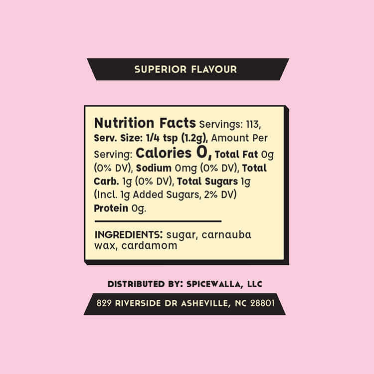 Cardamom sugar has a warm floral sweetness with citrusy spice notes that complement baked goods, desserts, and drinks.