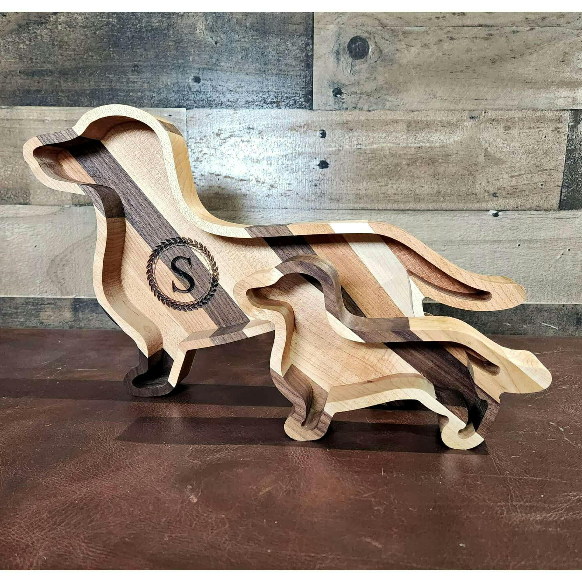 Dachshund Wood Tray is a handcrafted piece designed to celebrate one of the most recognizable and loved dog breeds. Shaped to capture the long, playful silhouette of the Dachshund, this tray blends personality, craftsmanship, and everyday function into a decorative accent dog lovers will appreciate.