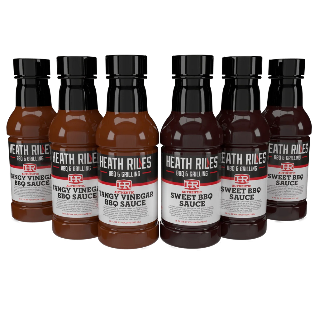 Heath Riles BBQ Sauce Multi-Pack – Sweet & Tangy (6 Bottles) is built for cooks who want bold, balanced BBQ flavor on hand at all times. With three bottles of Sweet BBQ Sauce and three bottles of Tangy Vinegar BBQ Sauce, this multi-pack delivers the perfect mix of rich sweetness and bright tang—versatile enough for ribs, pork, chicken, brisket, sandwiches, beans, and more.