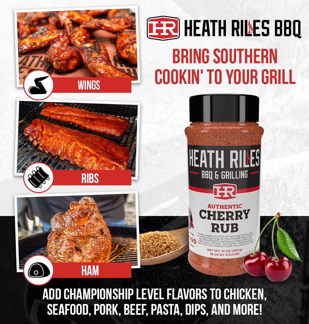 Heath Riles Cherry Rub is the sweet-heat, competition-tested seasoning that delivers bold cherry flavor, balanced warmth, and eye-catching color. Designed to shine on pork, ribs, chicken, and even lamb, this rub brings out the natural richness of your meat while adding the signature cherry finish pitmasters love. Whether you're smoking ribs for the backyard or dialing in flavor for a competition turn-in box, this rub brings big results with minimal effort.