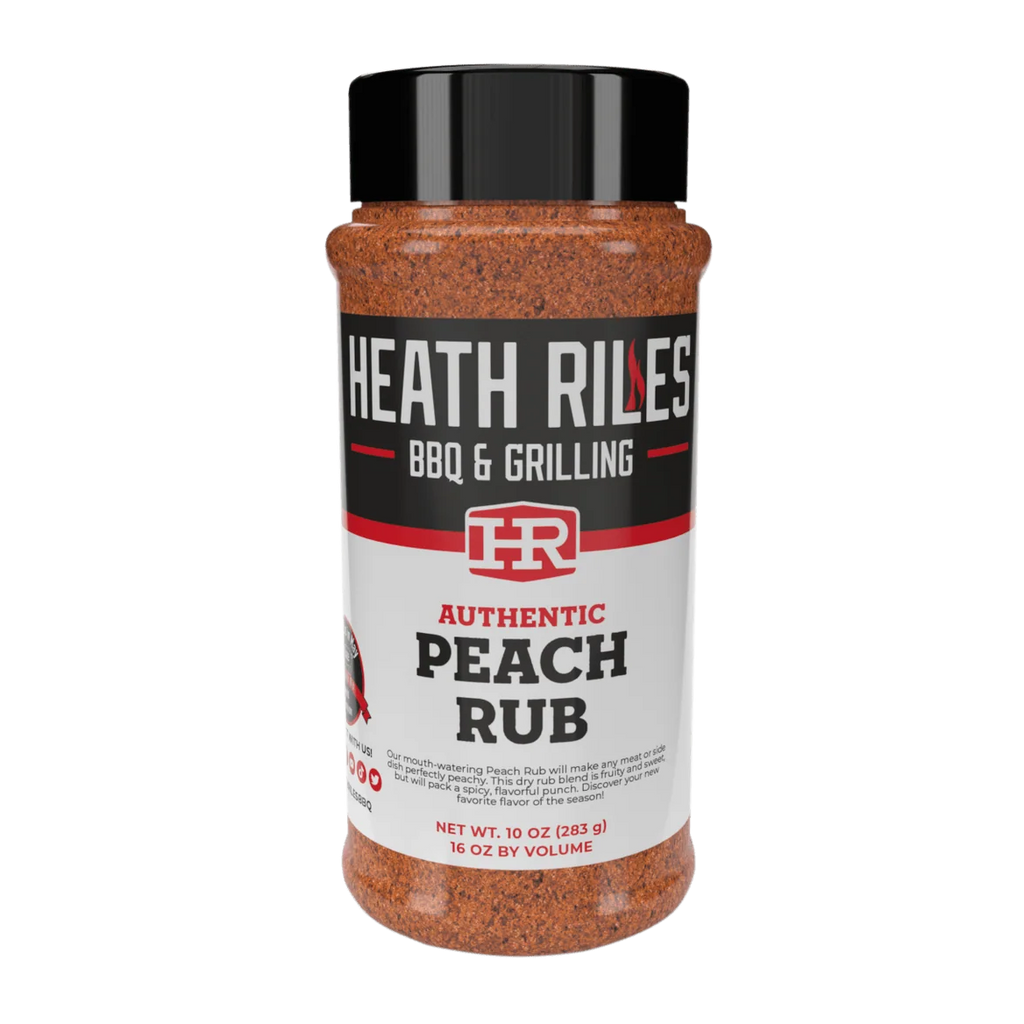Heath Riles Peach Rub delivers a better approach—layering juicy peach sweetness with savory spices and a subtle heat that holds up during grilling or smoking. Designed by championship pitmaster Heath Riles, this BBQ rub brings seasonal flavor that works year-round.