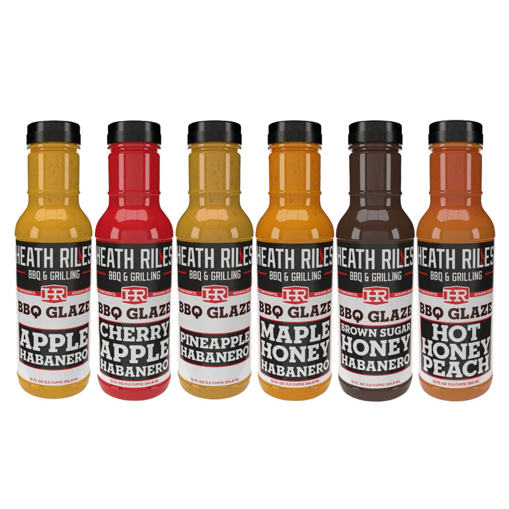 Six Signature Glazes, Endless Flavor PossibilitiesThis curated set includes every glaze Heath Riles has perfected over years of testing. Whether you're cooking for family, prepping for a competition, or stocking your flavor arsenal for the season, these glazes give you unmatched versatility and depth. Use them straight from the bottle, blend with BBQ sauce for a polished finish, or layer multiple glazes for custom flavor builds.