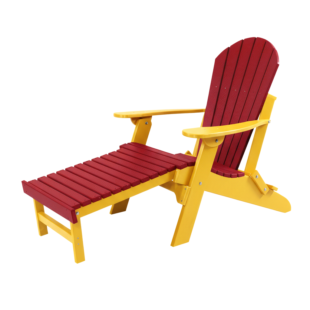 Meet the Kanyon Living Folding Adirondack Chair with Pullout Ottoman in Red & Yellow —a premium piece of poly furniture that combines timeless design with smart, space-saving function. Built by Amish craftsmen in the USA, this folding Adirondack chair offers smooth folding action and an integrated ottoman that slides out for instant relaxation. It’s the perfect choice for patios, porches, or any backyard retreat where you want comfort that’s built to last.