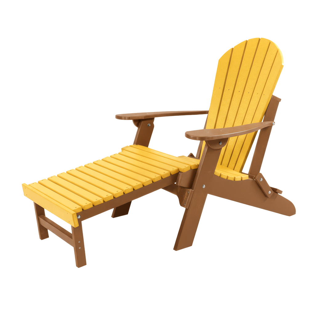 Meet the Kanyon Living Folding Adirondack Chair with Pullout Ottoman in Yellow & Cedar —a premium piece of poly furniture that combines timeless design with smart, space-saving function. Built by Amish craftsmen in the USA, this folding Adirondack chair offers smooth folding action and an integrated ottoman that slides out for instant relaxation. It’s the perfect choice for patios, porches, or any backyard retreat where you want comfort that’s built to last.