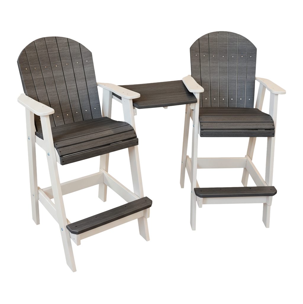 Experience premium outdoor seating with the Kanyon Living Poly Lumber Bar Height Patio Set for Two Driftwood Grey & White, an Amish-made, American-crafted unit featuring two bar-height Adirondack-style chairs joined by a convenient center table. Built from recycled HDPE poly lumber and finished with rust-resistant stainless hardware, this connected set delivers long-lasting durability, easy maintenance, and everyday comfort for patios, decks, and poolside spaces.
