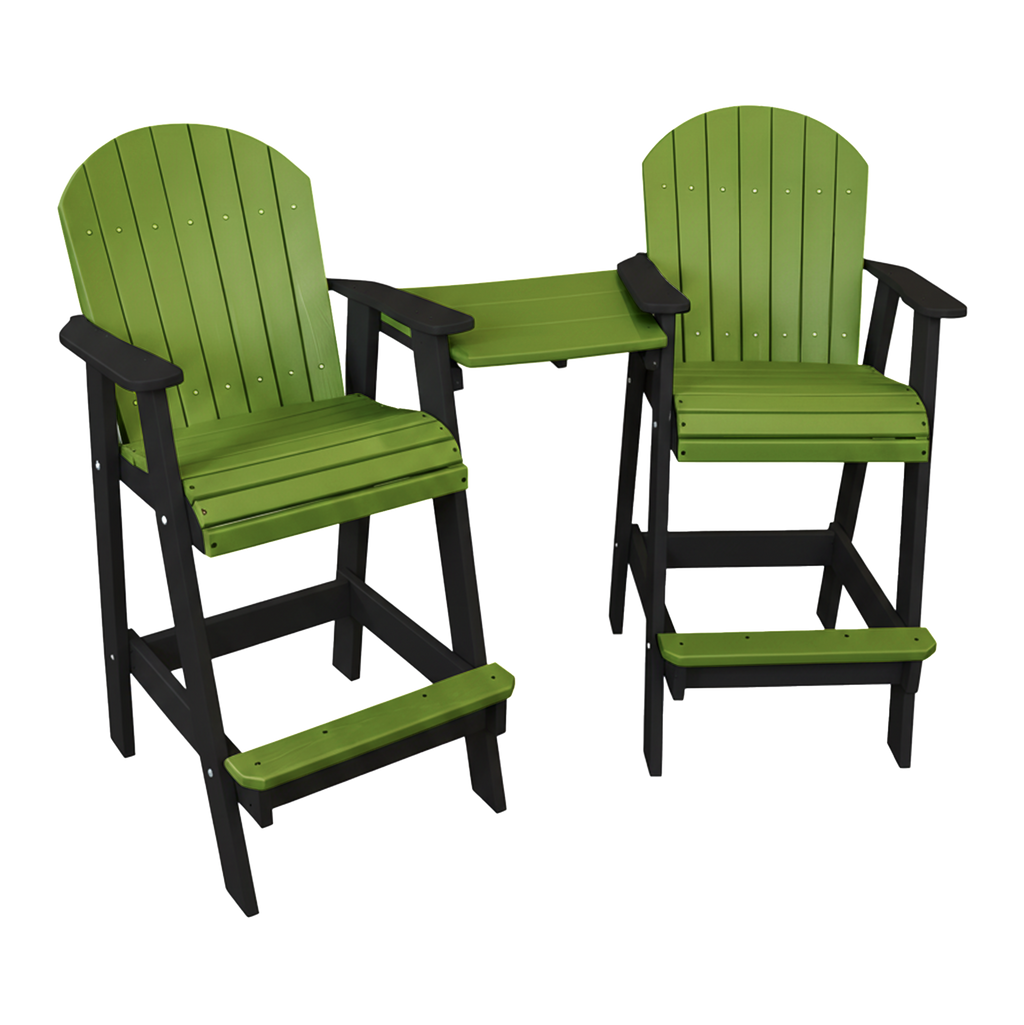 Experience premium outdoor seating with the Kanyon Living Poly Lumber Bar Height Patio Set for Two Lime Green & Black, an Amish-made, American-crafted unit featuring two bar-height Adirondack-style chairs joined by a convenient center table. Built from recycled HDPE poly lumber and finished with rust-resistant stainless hardware, this connected set delivers long-lasting durability, easy maintenance, and everyday comfort for patios, decks, and poolside spaces.
