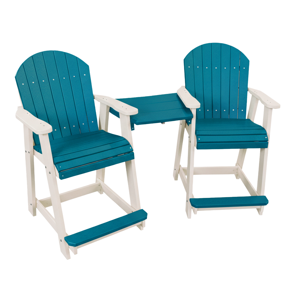 Bring color, comfort, and craftsmanship together with the Kanyon Living Poly Lumber Counter Height Patio Set for Two in Aruba Blue & White. Hand-built in the USA by skilled Amish artisans, this connected counter-height set features two contoured Adirondack-style chairs joined by a convenient center table—perfect for coffee mornings, sunset cocktails, or quiet evenings outdoors.