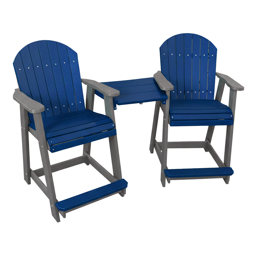Bring color, comfort, and craftsmanship together with the Kanyon Living Poly Lumber Counter Height Patio Set for Two in Blue & Light Grey. Hand-built in the USA by skilled Amish artisans, this connected counter-height set features two contoured Adirondack-style chairs joined by a convenient center table—perfect for coffee mornings, sunset cocktails, or quiet evenings outdoors.