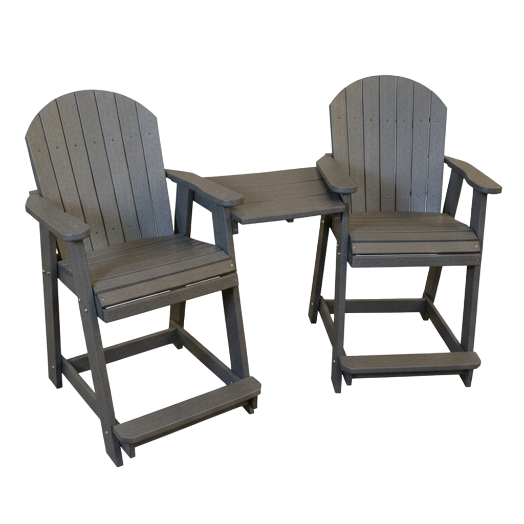 Bring color, comfort, and craftsmanship together with the Kanyon Living Poly Lumber Counter Height Patio Set for Two in Driftwood Grey. Hand-built in the USA by skilled Amish artisans, this connected counter-height set features two contoured Adirondack-style chairs joined by a convenient center table—perfect for coffee mornings, sunset cocktails, or quiet evenings outdoors.