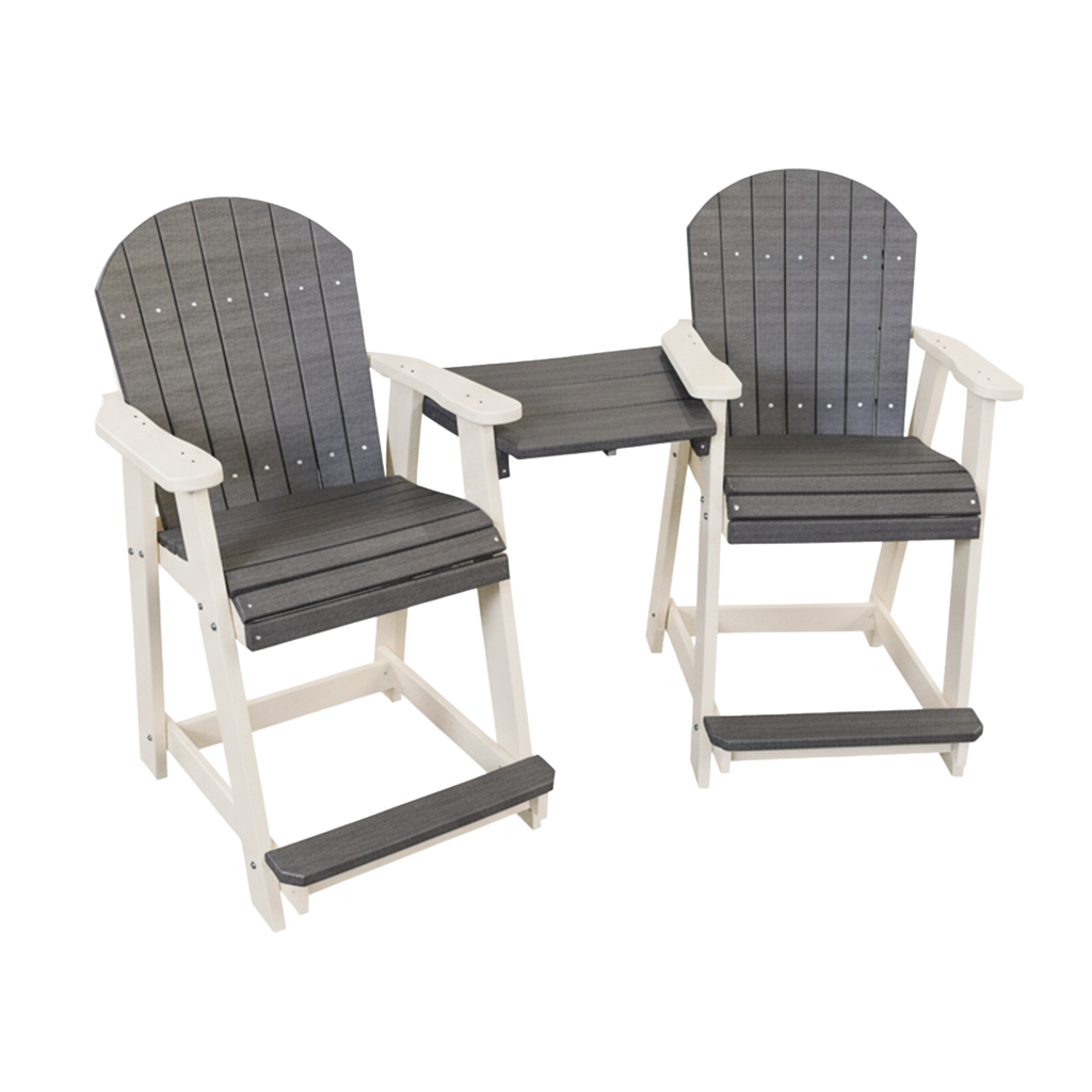Bring color, comfort, and craftsmanship together with the Kanyon Living Poly Lumber Counter Height Patio Set for Two in Driftwood Grey & White. Hand-built in the USA by skilled Amish artisans, this connected counter-height set features two contoured Adirondack-style chairs joined by a convenient center table—perfect for coffee mornings, sunset cocktails, or quiet evenings outdoors.