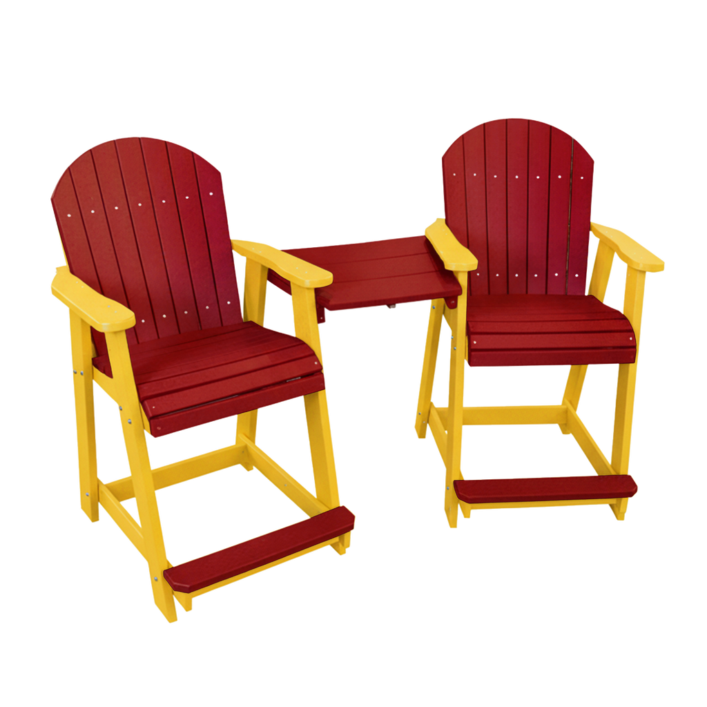 Bring color, comfort, and craftsmanship together with the Kanyon Living Poly Lumber Counter Height Patio Set for Two in Red & Yellow. Hand-built in the USA by skilled Amish artisans, this connected counter-height set features two contoured Adirondack-style chairs joined by a convenient center table—perfect for coffee mornings, sunset cocktails, or quiet evenings outdoors.