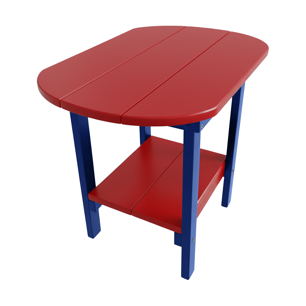 The Kanyon Living Poly Lumber Oval Side Table Red & Blue brings reliable durability and handcrafted quality to your patio, deck, poolside, or porch. Built by skilled Amish artisans in the USA, this compact yet sturdy outdoor side table provides the perfect resting spot for drinks, books, décor, small planters, and everything you want close at hand while relaxing outside.