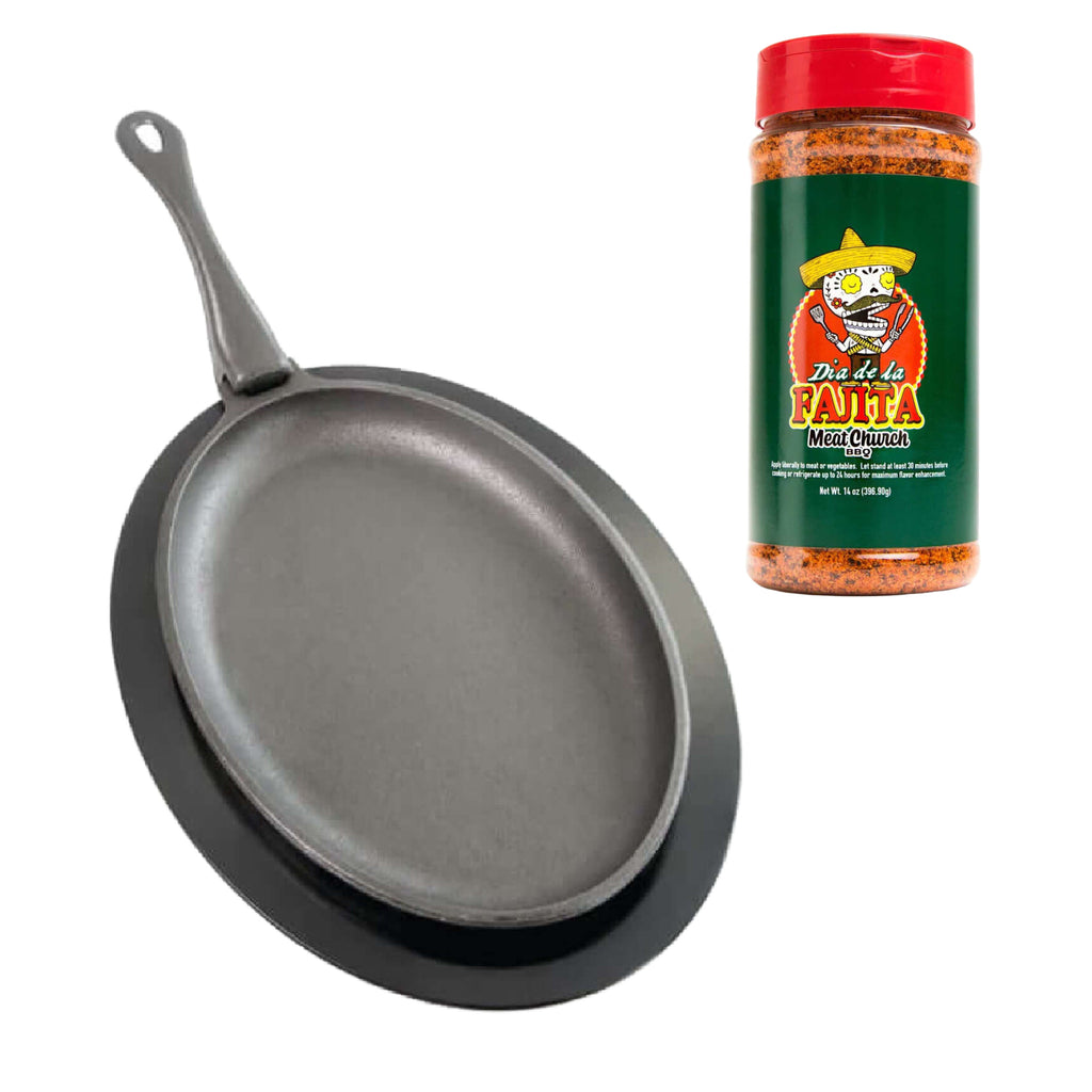 This set combines the Napoleon Cast Iron Fajita Skillet with Removable Handle (56003) and Meat Church Dia De La Fajita BBQ Rub to deliver consistent heat, sizzling presentation, and vibrant flavor. It is a complete fajita solution that works just as well for weeknight dinners as it does for entertaining guests.