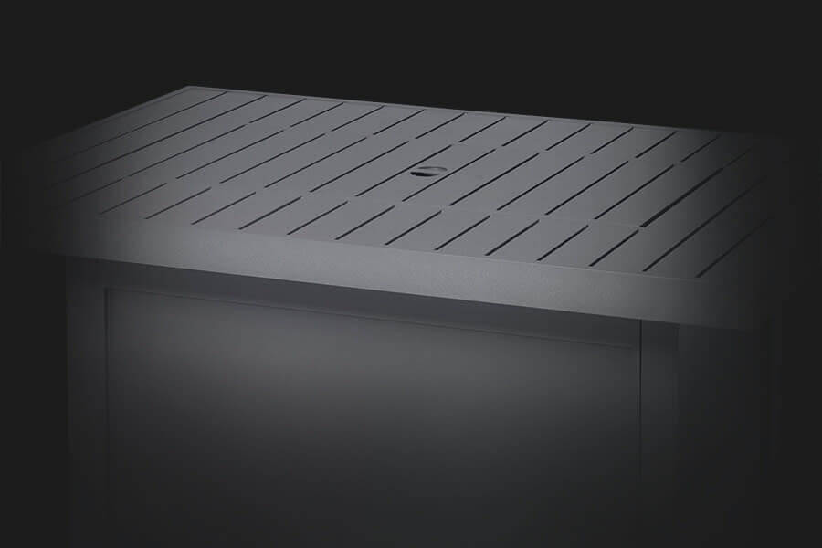 Featuring a Topaz CRYSTALINE™ ember bed and clean linear design, the Hamptons Rectangle Patioflame® Table blends luxury and function. The integrated thermocouple valve ensures safety by automatically cutting gas if the flame goes out, while the concealed propane tank compartment keeps your setup sleek and organized. With its included burner lid, you can easily convert it into a full outdoor table when not in use.