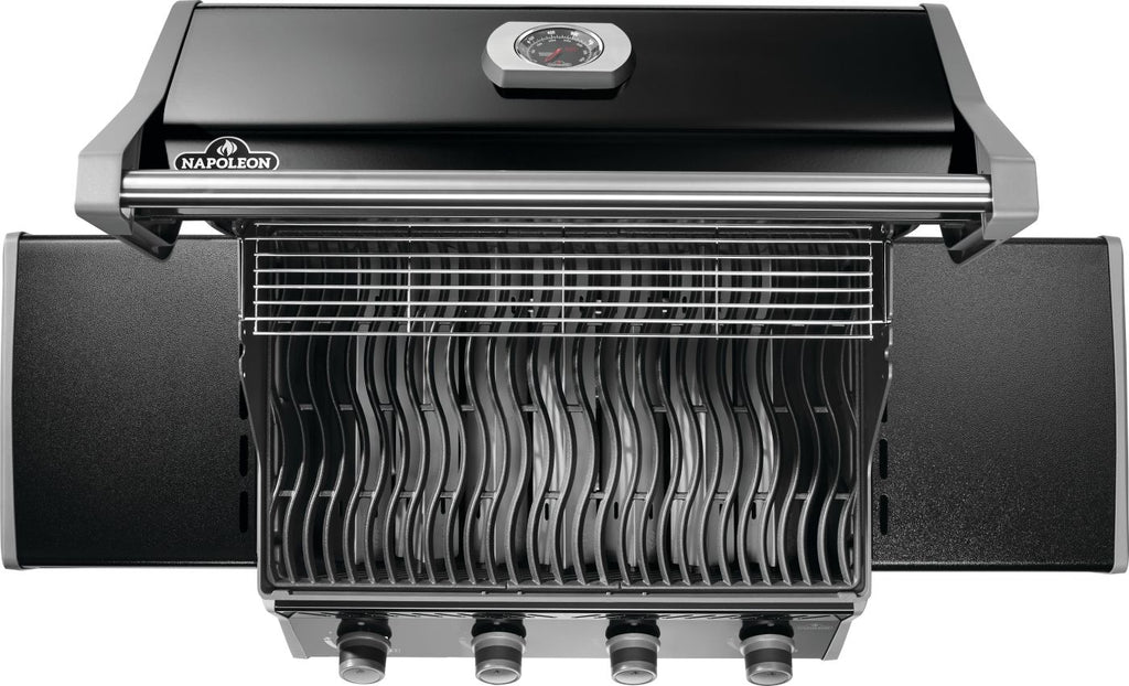 The WAVE™ porcelainized cast iron cooking grids ensure even heating and produce Napoleon’s iconic sear marks. A durable black porcelain enamel lid and powder-coated body protect against the elements and fingerprints, keeping your grill looking sharp. Folding side shelves make it easy to store in compact spaces, and locking caster wheels offer smooth mobility and secure placement.