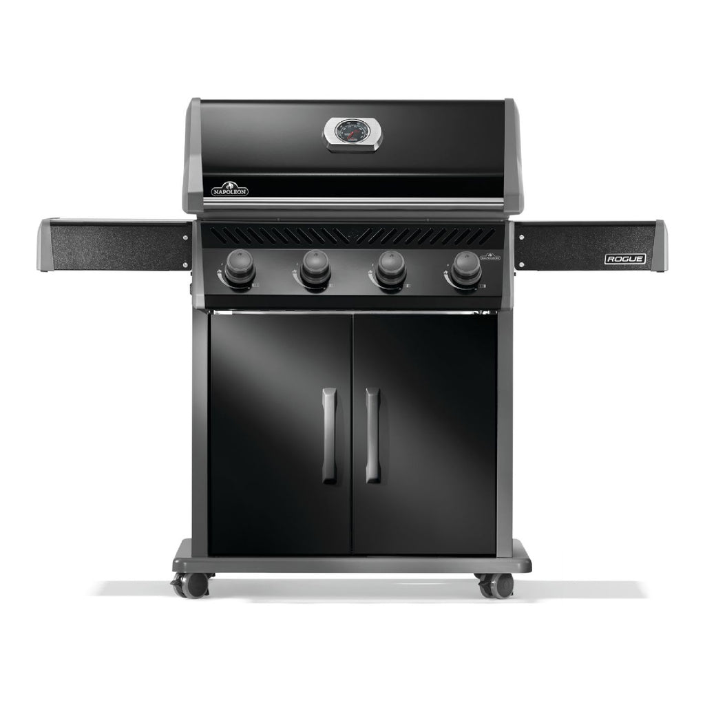 The Napoleon Rogue 525 Stand Alone Gas Grill with Stainless Steel Grates in black delivers power, precision, and long-lasting durability for backyard cooks who demand performance. With four stainless steel burners, Wave™-shaped stainless steel cooking grids, and 525 square inches of cooking space, this grill makes it easy to sear, roast, and grill to perfection every time. Dual-level sear plates maximize flavor by vaporizing drippings and promoting even heat distribution.
