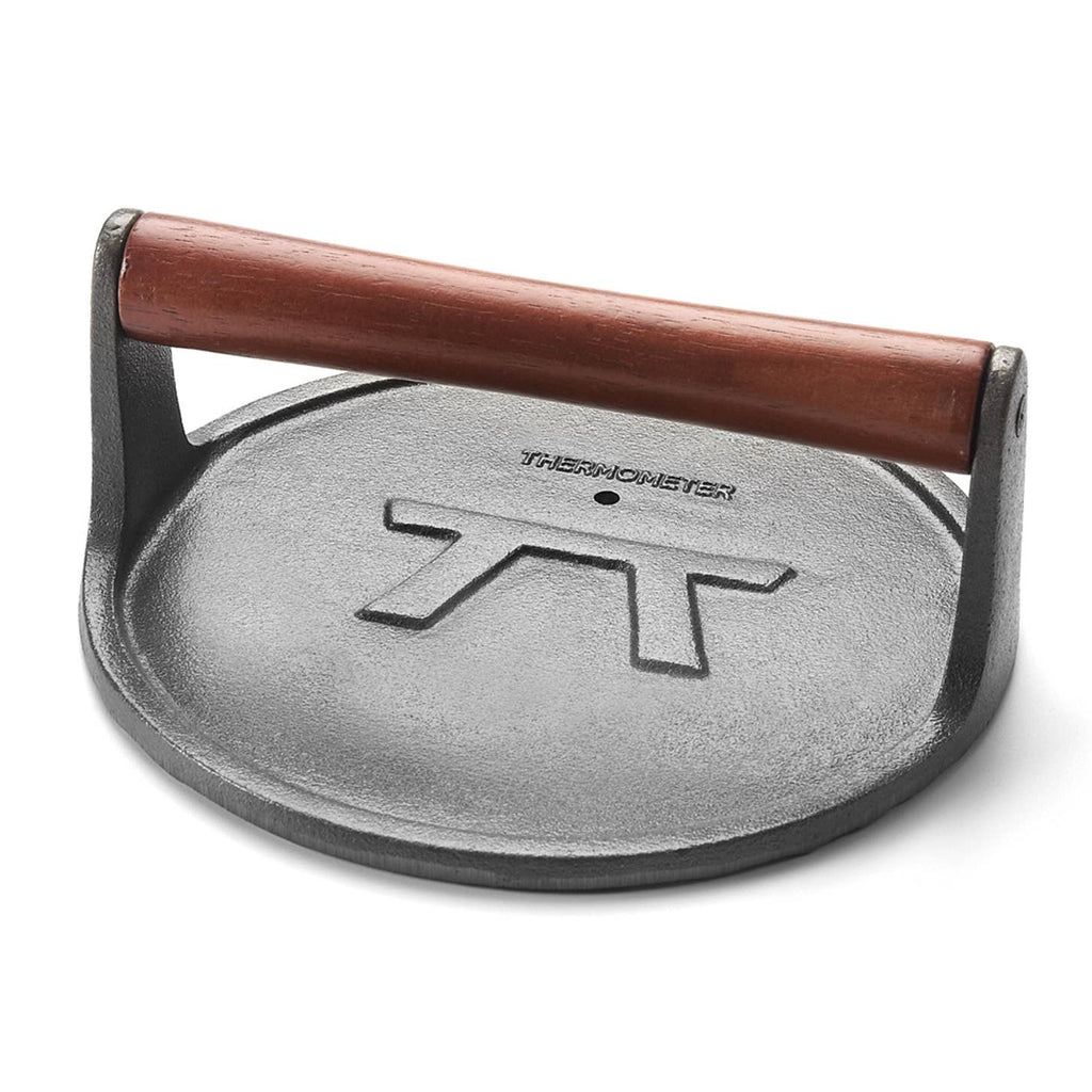 Designed with thick grooves and a solid 3-pound weight, this press excels at creating deep grill marks while improving sear quality. It’s also an excellent tool for smashburgers, helping you achieve crispy edges, fast browning, and maximum flavor on flat-top griddles or cast iron cooktops.