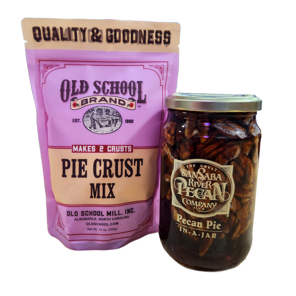 Our Classic Southern Pecan Pie Kit brings everything you need for a true homemade pie experience, combining the flaky Old School Brand Pie Crust Mix with the award-winning San Saba River Pecan Company Pecan Pie in a Jar. With this duo, you’ll bake bakery-quality pies at home—rich, nutty, and wrapped in golden, tender crust.