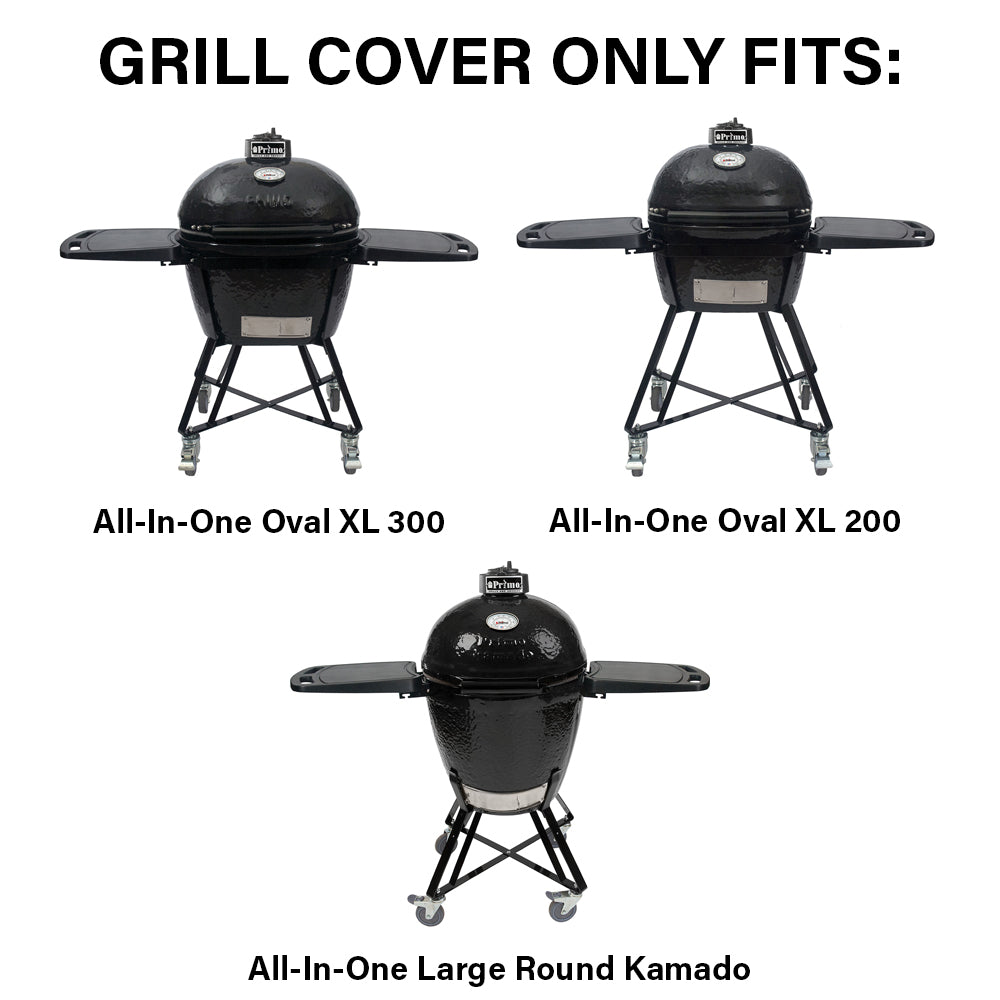 This is a custom-fit cover designed specifically for the Primo All-In-One Oval LG 300, Oval JR 200, and Large Round Kamado freestanding grill (7800). With crack-resistant, 2-ply UV-protected 300D polyester vinyl and a stretch-band security fit, it helps block the elements and reduce wind lift during high winds.
