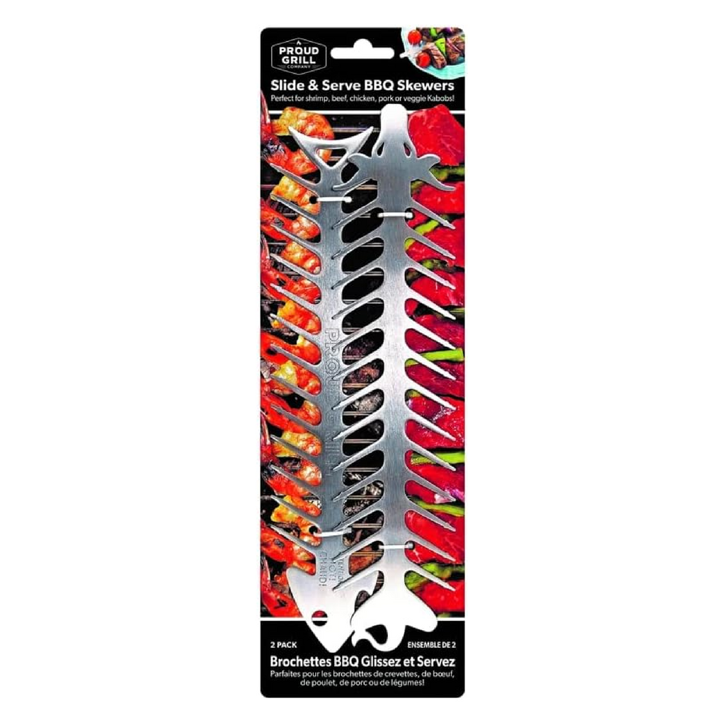 What makes these better than bamboo skewers?They’re reusable, dishwasher safe, won’t burn or splinter, and the flat profile helps keep food from rotating while you grill.