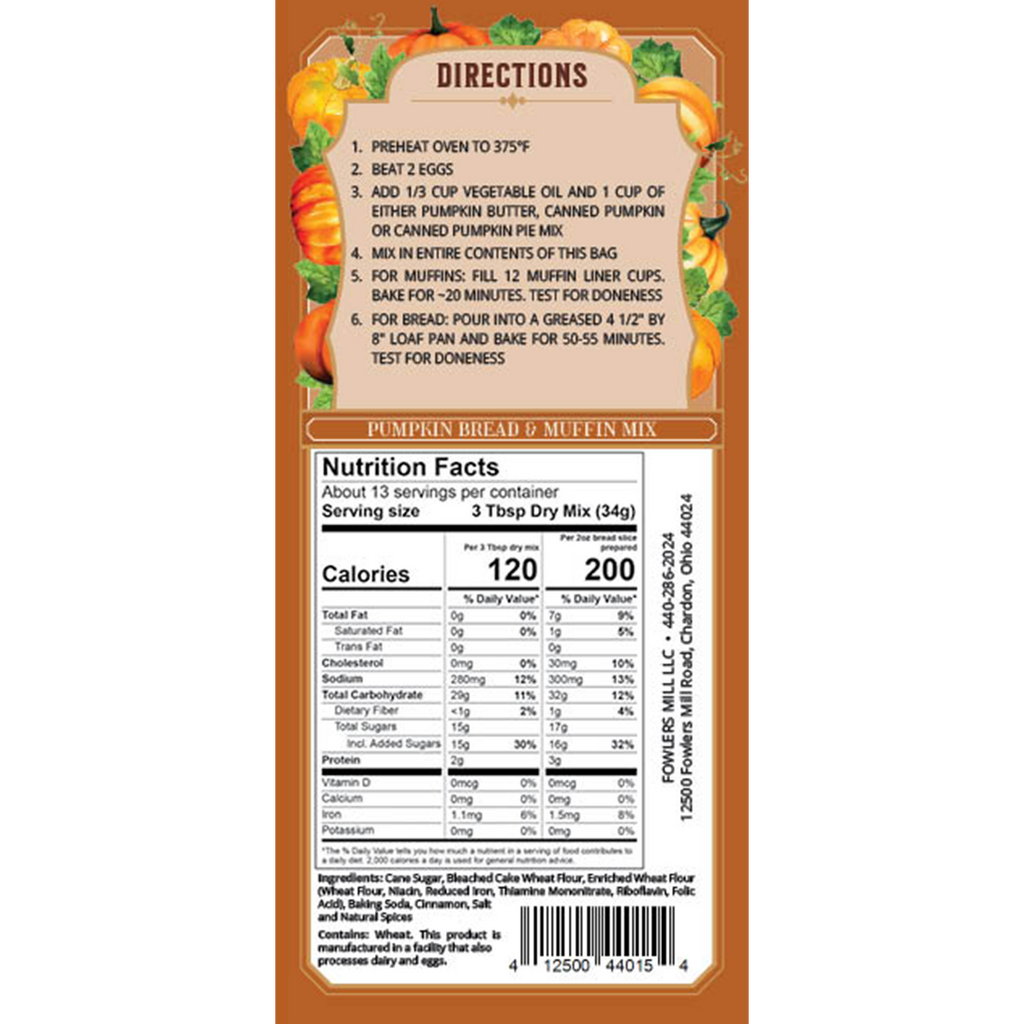 Bring the comforting flavors of fall into your kitchen with Fowler's Mill Pumpkin Bread and Muffin Mix. This seasonal favorite makes it easy to bake moist, fluffy pumpkin bread or muffins bursting with cinnamon-spiced aroma. All you need to add are eggs, vegetable oil, and fresh pumpkin—perfect for creating that farm-fresh flavor right at home.