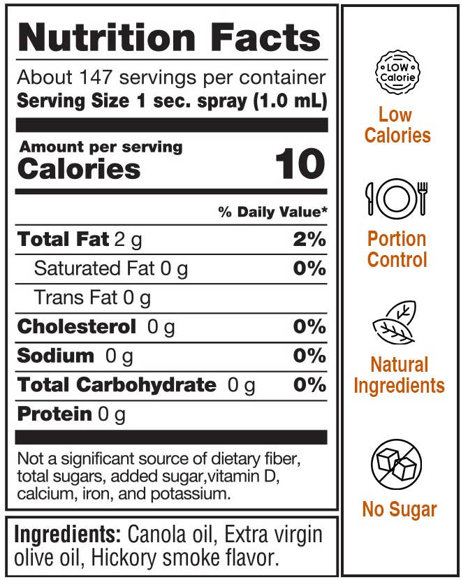This set includes Hickory Smoke, Wood Fired Garlic, and Italian Herb, each packaged in a 5 ounce aerosol-free can with a spray or stream nozzle system. Use before seasoning, during grilling, or after cooking to enhance flavor and help prevent dryness.
