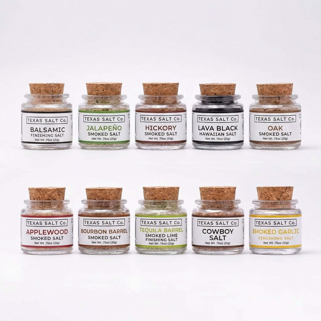 Texas Salt Co. Ultimate Smoked Salt Sampler Gift Set brings together ten of the brand’s most sought after smoked salts and finishing salts in one curated collection. Designed for grillers, home chefs, and food lovers, this smoked salt sampler delivers bold wood fired flavor, vibrant finishing blends, and artisan mineral salts in perfectly sized jars for discovery and gifting.