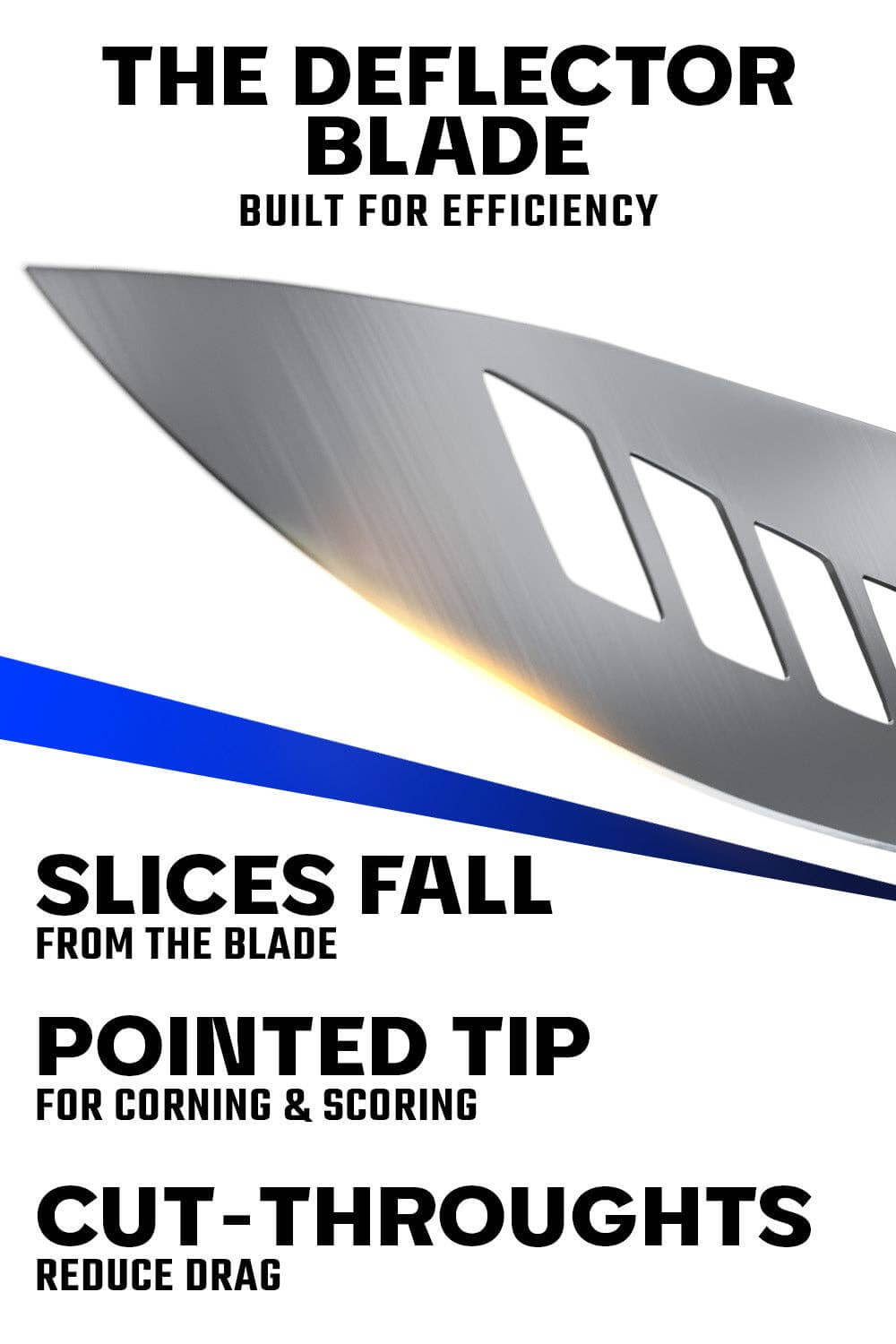 - Polished satin blade finish reduces drag when cutting dense vegetables