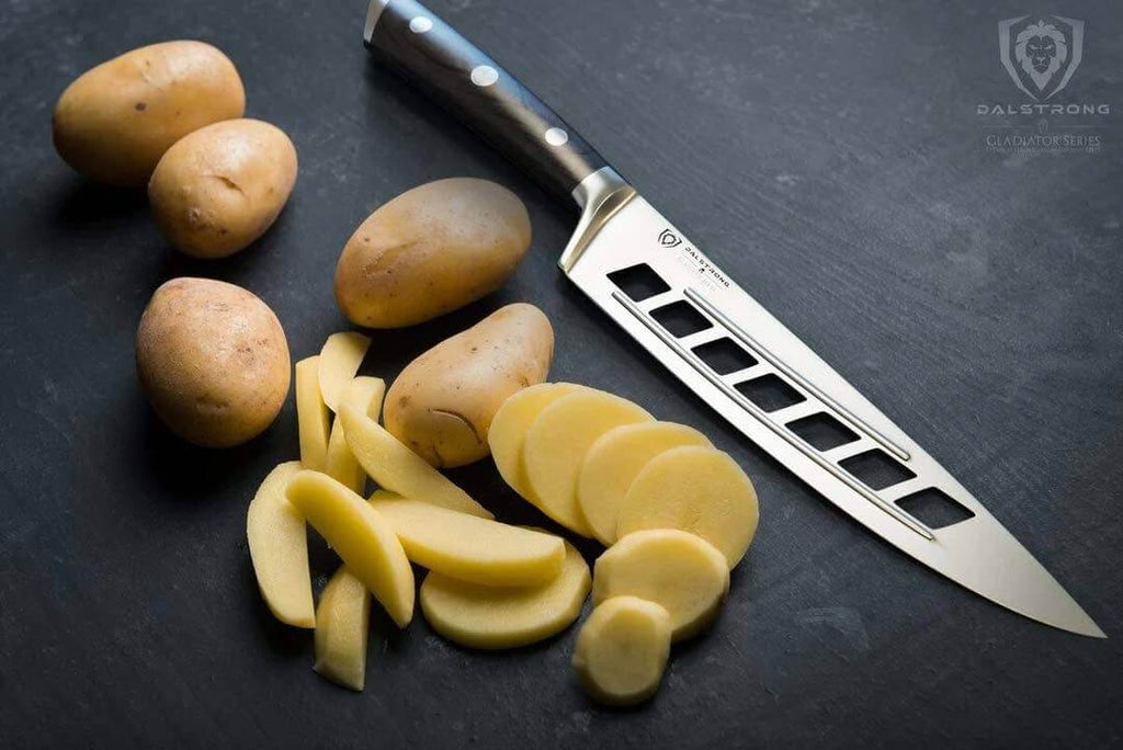 If you prep a lot of vegetables, you know how frustrating it can be when a knife wedges in produce, struggles through dense roots, or lacks the control needed for precise slicing. The Dalstrong Gladiator Series Vegetable Chef Knife (8") is designed specifically to solve those problems with a broad blade profile, razor sharp edge, and perfectly balanced construction that delivers smooth, controlled cuts through everything from delicate herbs to dense squash.