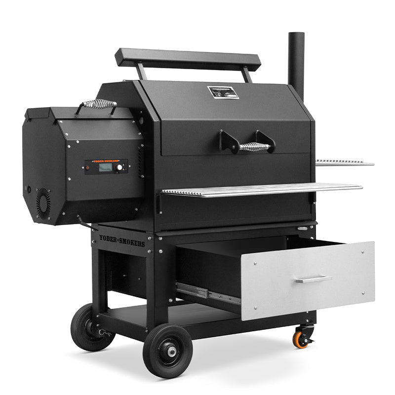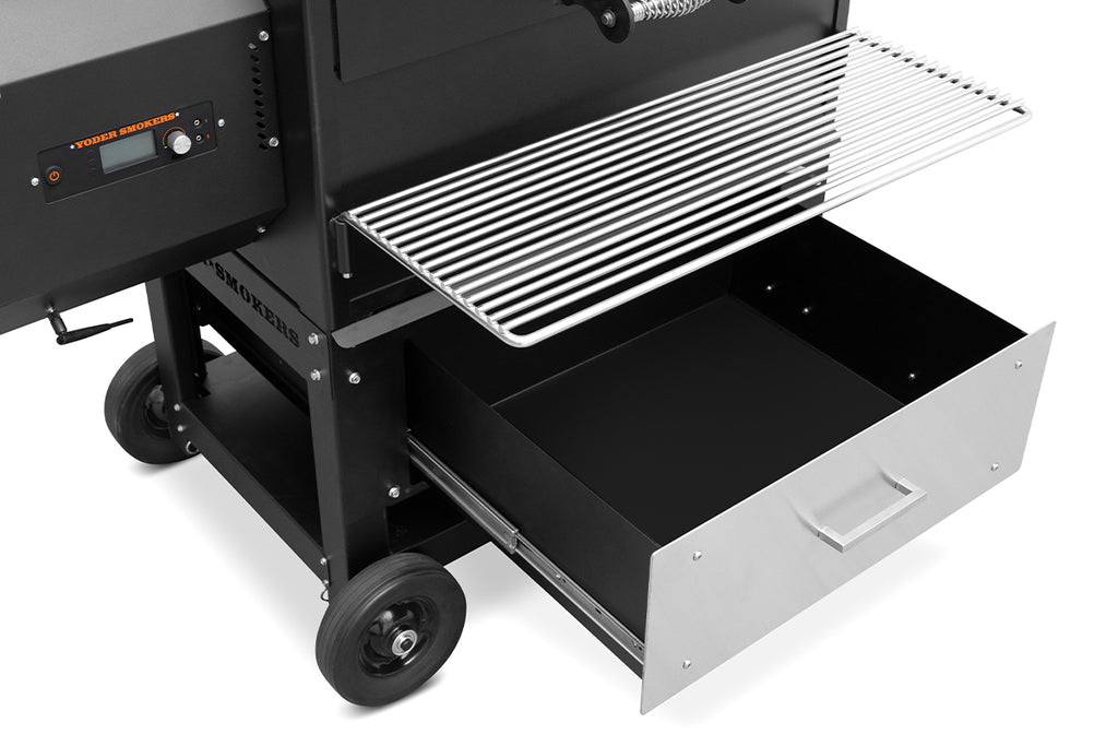 This storage drawer system is compatible with standard cart Yoder Smokers YS480 and YS640 pellet grills.
