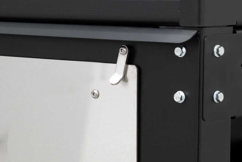 This full-depth drawer provides ample room for tongs, spatulas, gloves, thermometers, and grill brushes, while also accommodating larger accessories such as grill grates, the Yoder Smokers cast iron griddle, and the wood-fired oven.